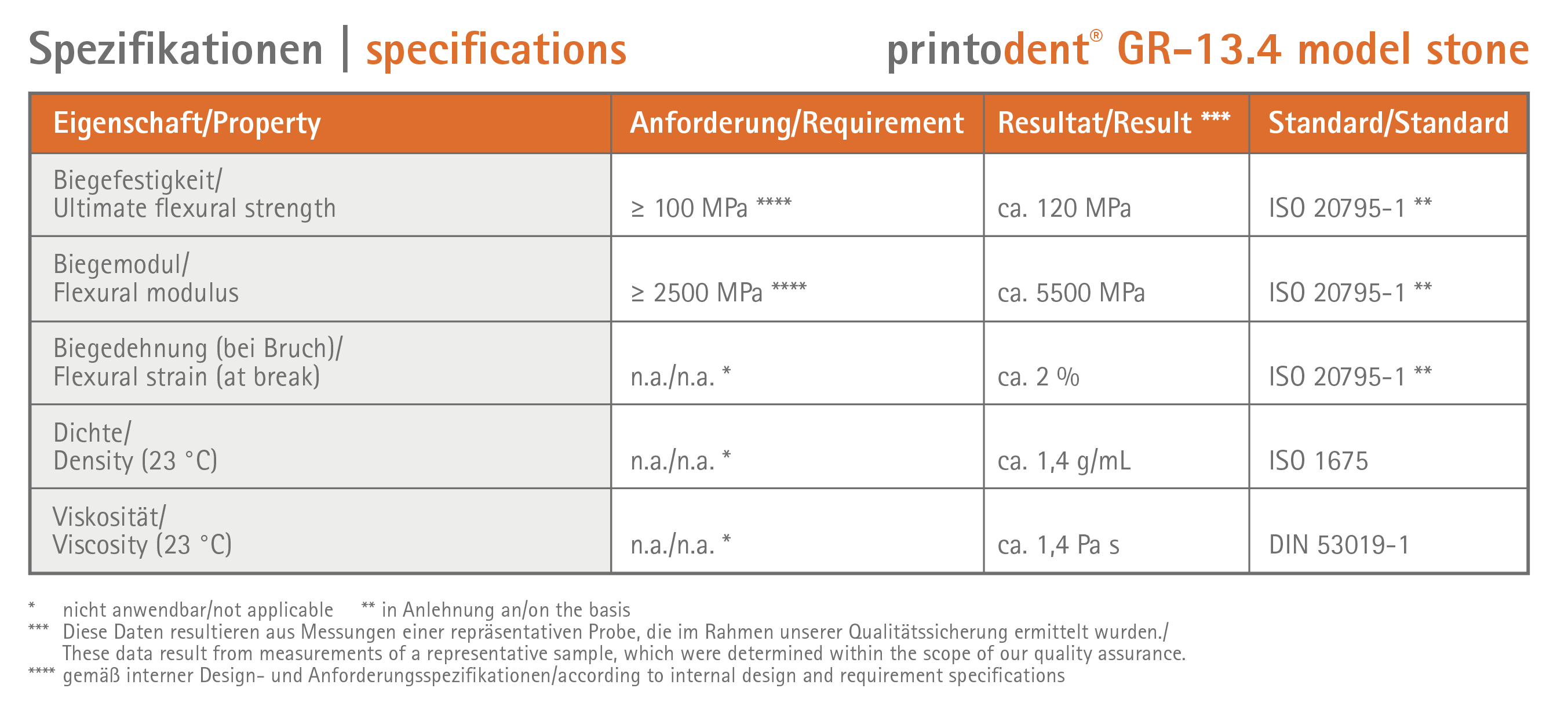 Das neue printodent® GR-13.4 model stone ist das erste Modellmaterial seiner Klasse, dass Ihnen das echte „Gipsgefühl” gibt. Durch seine gipsähnliche Haptik, in Kombination mit hoher Dichte, Oberflächenhärte und Festigkeit haben Sie die Möglichkeit, die Vorteile der „analogen” und „digitalen” Modellwelt gleichzeitig zu nutzen. So besitzen Dentalmodelle aus printodent® GR-13.4 model stone eine matte Oberfläche, die einen optimalen Kontrast auch bei feinsten Details bietet. Darüberhinaus ist printodent® GR-13.4 model stone sowohl mit printisol als auch mit herkömmlichen, wasserbasierten Isoliermitteln kompatibel. Ein weiterer Vorteil des printodent® GR-13.4 model stone ist seine hohe Temperaturstabilität, die auch das Arbeiten mit Bunsenbrennern und Lötkolben vorteilhaft unterstützt.