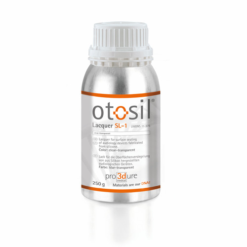 otosil® SL-1 eignet sich hervorragend zur Glättung von Unebenheiten, wie sie z. B. im „Digitalen Workflow“ durch Baustufen in 3D-gedruckten Castformen auf die Otoplastiken übertragen werden können. Der Lack zeichnet sich durch optimierte Fließ- und Benetzungseigenschaften in Kombination mit einer außergewöhnlichen Haftung auf Silikonoberflächen aus. Darüber hinaus ist er frei von aromatischen Lösemitteln und unterstützt Sie so im Labor beim Thema Arbeitssicherheit. Mit otosil® SL-1 beschichtete Otoplastiken „glänzen“ sprichwörtlich durch ihre Oberflächengüte.