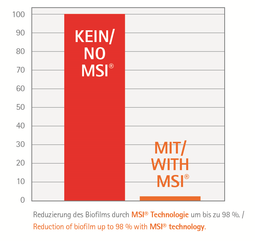 - reduzierte Biofilmadhäsion durch MSI® Technologie